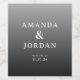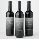 This elegant wedding wine label features a minimalist design with a gradient background transitioning from light to dark gray. The clean, serif typography is arranged in a balanced vertical layout, emphasizing sophistication and formality. Customizable text fields allow for personalization of names and dates, making it perfect for commemorating your special day. The understated elegance and grayscale palette create a timeless look ideal for weddings or formal celebrations.