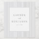 These elegant wedding wine labels feature a minimalist design with vertical gray stripes creating a subtle textured background. The central white panel highlights bold, uppercase serif typography for the names and date, complemented by a smaller cursive "and" adding a touch of sophistication. Perfect for formal celebrations, this modern and timeless style emphasizes clarity and simplicity, making it an ideal choice for couples looking to add a refined personalization to their special day.