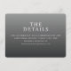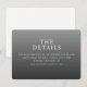 This wedding enclosure card features a minimalist design with a gradient background transitioning from light to dark gray, creating an elegant and sophisticated look. The layout is clean and well-spaced, emphasizing the text hierarchy with bold serif typography for "THE DETAILS" and lighter serif fonts for additional information. The grayscale color palette adds a modern touch while maintaining a formal tone, perfect for conveying important details clearly. Ideal for weddings, this card provides a professional and straightforward way to direct guests to your website for more information.