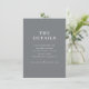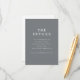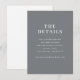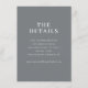 This wedding enclosure card features a minimalist design with a solid charcoal gray background, creating an elegant and modern aesthetic. The layout is simple and balanced, utilizing ample negative space to highlight the centered white serif typography that guides guests to additional details on your wedding website. The clean lines and precise alignment enhance readability while maintaining a formal and sophisticated tone, perfect for conveying essential information in a stylish manner. Ideal for couples seeking a refined and uncluttered look, this card adds a touch of class to any wedding invitation suite.