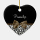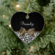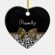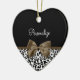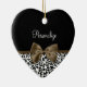 Any sophisticated girly girl of fashion would love to have her name personalized on this trendy black and white leopard print heart-shaped ornament with an elegant dark brown ribbon tied into a chic bow. Flat printed image, not actual ribbon.