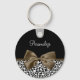Any sophisticated girly girl of fashion would love to have her name personalized on this trendy black and white leopard print keychain with an elegant dark brown ribbon tied into a chic bow. Flat printed image, not actual ribbon.