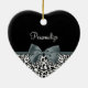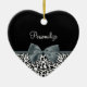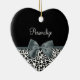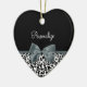 Personalize by adding the name of any girly girl to this sophisticated black and white leopard print heart-shaped ornament with an elegant ribbon tied into a classy feminine bow. This stylish animal print design is a flat printed image, and does not contain actual ribbon.