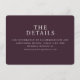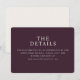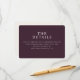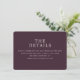 This wedding enclosure card features a sophisticated, minimalist design with a deep maroon background that exudes elegance and refinement. The layout is centered and balanced, utilizing clean typography in a classic serif font to convey essential information clearly. The mood is professional and modern, making it perfect for directing guests to further details about the event. Its simple yet stylish aesthetic ensures it complements any wedding theme seamlessly.
