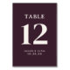 This elegant wedding table card features a deep maroon background with crisp white serif typography, creating a sophisticated and timeless look. The design is simple yet refined, with the number "12" prominently displayed in bold font at the center, surrounded by ample negative space for a clean appearance. Customizable text allows for personalization, making it perfect for marking special seating arrangements at your event. The classic style and understated elegance make this card ideal for formal weddings or gatherings, ensuring clear communication while adding a touch of class to your decor.