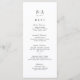 Sophisticated black and white minimalist wedding menu cards with couple's monogram. The back of the design features vintage floral with color editable background. Simple and elegant. Great for modern classic wedding, and formal wedding.
