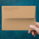 This wedding envelope features a minimalist design with centered text on an off-white background, creating an elegant and uncluttered appearance. The muted brown typography contrasts subtly against the light backdrop, enhancing readability while maintaining a sophisticated look. With its modern aesthetic and clean lines, this envelope is perfect for formal occasions, offering a refined touch without any decorative elements. Its simple yet stylish presentation makes it ideal for weddings, ensuring your invitation stands out with understated elegance.