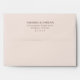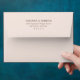 This wedding envelope features a minimalist and elegant design with a muted brown color palette, creating a warm and sophisticated tone. The layout is simple yet refined, showcasing centered uppercase serif typography for the names and address, which are customizable placeholders. The clean lines and balanced spacing emphasize clarity and formality, making it perfect for weddings or formal invitations. Its understated style conveys timeless elegance, ideal for those who appreciate simplicity and sophistication in their stationery.