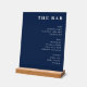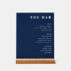 Sophisticated Navy Blue Typographic Bar Menu Acrylic Sign
