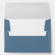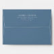 This wedding envelope features a minimalist design with a solid blue background and crisp, centered white text. The layout is clean and elegant, utilizing ample negative space to highlight the typography, which includes a classic serif font for a timeless look. Perfectly balanced, this design conveys sophistication and simplicity, making it ideal for formal occasions like weddings. Its understated style ensures that your special details stand out without distraction.
