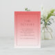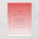 This wedding enclosure card features a minimalist and modern design with a warm gradient background transitioning from deep coral pink to light peach, creating an inviting atmosphere. The layout is clean and structured, emphasizing clarity with centered text in a hierarchical arrangement using elegant serif fonts that add a touch of formality. The design focuses on functionality, guiding guests to visit the wedding website for more details, while maintaining a sophisticated and cohesive look through its soft color palette and ample negative space. Perfect for couples seeking a stylish yet straightforward way to share important information, this card sets a tone of warmth and sophistication.