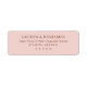 These return address labels feature a minimalist and modern design with a soft pastel pink background and elegant serif typography. The layout is clean and symmetrical, emphasizing clarity and sophistication through ample negative space and balanced composition. Perfect for formal occasions, the muted color palette and understated elegance make these labels ideal for weddings or special events, offering a customizable touch without overwhelming details.