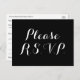 This luxurious R.S.V.P postcard design features the message "Please R.S.V.P." on the front. It also features a personalized RSVP form on the back, along with a personalized address that the completed RSVP cards would be mailed to. RSVP cards like this might be used to find out who will be attending a wedding reception, a wedding shower, a Christmas party, a graduation party, or some other celebration.