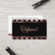 This elegant design features striking faux rose gold foil and bold black accents. Top and bottom borders of a bold, vertical stripe appear above and below a wide black band across the center, which is bordered in double rose gold strips. In the center of the badge, using a pretty, modern script font, is a typography graphic overlay that says "Referral". This graphic text layer was embellished with the same rose gold effect as I used in the stripes and borders. On the back I've set up all the template fields you will need to offer the details and terms to your clients. Use the template fields to add your own details, and make any wording changes needed. You may also click to customize further if you'd like to change fonts, sizes or positions of any elements. // Ideal for salon owners, hair stylists, beauticians, manicurists and nail technicians, makeup artists, massage therapists, personal coaches, trainers, and many others in healing and personal service industries who appreciate honoring business referrals. // Please don't hesitate to reach out if you have special requests or need customizing assistance. // Designed by Melody Watson for Paper Muserie.
