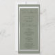 Beautiful sophisticated sage and silver colored wedding program. Trendy sage and silver colors for your special day. Romantic and fashionable colors for weddings. Pretty sage background with a shiny silver border. Unique, chic and classy invitation suitable for any season. All text, font and font color is fully customizable to meet your requirements. If you would like help to customize, or would like matching products, please contact me through my store and i will be very happy to help you.
