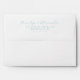 This wedding envelope features a minimalist design with a clean, centered layout on a solid background. The elegant cursive font for the names is paired with a simple sans-serif type for the address details, creating a sophisticated and modern look. The light teal color adds a touch of freshness against the neutral backdrop, while ample negative space ensures a refined and uncluttered appearance. Perfect for formal announcements, this design exudes simplicity and elegance, making it ideal for couples seeking a chic and understated aesthetic.