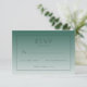 This elegant wedding RSVP card features a minimalist design with a soft gradient background transitioning from teal to light aqua, creating a serene and sophisticated atmosphere. The layout is clean and balanced, utilizing ample negative space for a modern look. Typography includes bold serif fonts for the "RSVP" heading and graceful cursive script for personalization, complemented by simple sans-serif options for response choices. Perfect for formal events, this card conveys tranquility and refinement, making it an ideal choice for couples seeking a stylish yet understated invitation accessory.