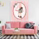 Stylish lady shopping with french bulldog puppy on stripy pink background. Designed by artist Maryline Cazenave.