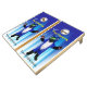 Natural Wood Cornhole Set, Royal Blue and Yellow bags