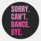 Sorry Can't Dance Bye Retro Funny Dancer Dancing D Classic Round Sticker