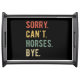 'Sorry. Can't. Horses. Bye.' fun quote for a horse lover, pony mom, or horse dad to wear every day.