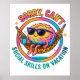 Vibrant, colorful design featuring a cartoon character wearing sunglasses sitting hammock sipping coffee. The colorful text reads: "Sorry can't social skills on vacation". This design is available on a wide variety of products.