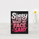 Sorry For What My Face Said Funny Sarcastic Minima Card