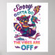 Vibrant, colorful design featuring a cartoon racoon wearing cowboy hat ridding a cartoon roadrunner. The colorful text reads: "Sorry gotta go the vibes are off". This design is available on a wide variety of products.