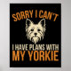 Sorry I Can't I Have Plans With My Yorkie Dog Owne Poster