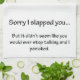 Sorry I slapped you...but it didn't seem like you would ever stop talking and I panicked. We've all had that thought. Now all you have to do is point to this funny saying to let everyone know you are not responsible for your actions.