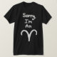 Aries: "I'm an Aries and I can't keep calm!" This t-shirt features a bold ram symbol and a humorous take on the popular 'Keep Calm' phrase. Let the world know you're not one to be tamed with this funny tee.