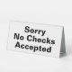 This white sign indicating that a business does not accept checks is an important component of the establishment's payment policies.