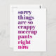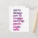 "Sorry things are so crappy mccrap pants right now" greeting card. Perfect empathy card when someone is going through a hard time, divorce, cancer, breakup, etc...