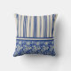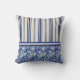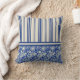 This cushy throw pillow features blue and ivory vertical stripes that run down to a blue and ivory pattern inspired by a favorite Victorian English China pattern designed by William Morris. Perfect for your Victorian decor or as part of an eclectic blue and white mix.