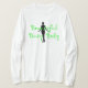I love this shirt. I had written to the artist asking her if this picture was available on a shirt, and she wrote me back telling me where I could find the shirt. These shirts can be custom made to have a different saying. I loved this saying and went with it. The artist wrote me back later to tell me that she had seen my order go through. How's that for service? Pretty special. It's just as displayed. Perfect!