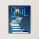 Disney/Pixar's Soul | Theatrical art for Soul, featuring Joe at the top of piano key style steps with the logo shining behind him.