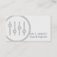 In this sound engineer music musician business card, a big bold translucent black icon of a volume sliders sits on the left side of the card. The background is a soothing off-white paper texture, with your name and title appearing in simple easy to read black letters on the lower right. Your other contact details appear on the back of the card. Perfect for music, musician, performing arts, music related, professional themes.
