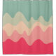 A design made up of irregular wave or hill like shapes arranged like a landscape with a progression of bands one behind or on top of another abstractly playing with color and space. The design is also very reminiscent of sound and music with the wave like shapes and harmonising colours.