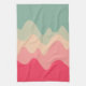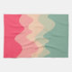 A design made up of irregular wave or hill like shapes arranged like a landscape with a progression of bands one behind or on top of another abstractly playing with color and space. The design is also very reminiscent of sound and music with the wave like shapes and harmonising colours.