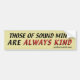 "THOSE OF SOUND MIND ARE ALWAYS KIND" on textured yellow background