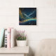 Soundwave & musical notes Pattern wall clock, blue & gold.