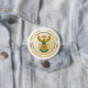 The national coat of arms of South Africa, is infused into the center of a faux gold rimmed circle shape. Around this image, is a faux gold laurel wreath which completes the design.