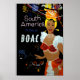 Vintage air travel poster promoting South America as a destination showing a vibrant Carnival scene.