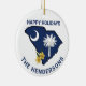 Capture the essence of South Carolina with this stunning Christmas Ornament featuring the state flag nestled within the outline of the state itself, adorned with the vibrant yellow Jessamine, the state flower. Celebrate the rich heritage and natural beauty of South Carolina with this unique and eye-catching artwork, perfect for adorning your Christmas Tree or as a thoughtful gift for lovers of the Palmetto State. Design and text on both side of this ornament make it fun to personalize. The text can be different on each side if you wish. Edit text from the product page or to change font style or color, use the design tool.