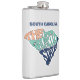 Fun and colorful typographic design with a retro feel features the state of South Carolina's nickname: The Palmetto State displayed within a state shaped silhouette
