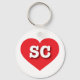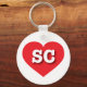 This key chain features a vibrant red heart containing the bold, white, upper case letters SC, the official abbreviation for South Carolina, the Palmetto state.