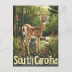 Immerse yourself in the enchanting beauty of South Carolina with our travel ad illustration. This captivating piece captures the essence of the state's woodlands, where majestic white-tailed deer showcase their elegance in their natural habitat. Picture yourself on a tranquil exploration, encountering these graceful creatures amidst the palmetto-lined landscapes, and feeling the serene allure of South Carolina's wildlife. Embark on a journey to this nature lover's haven, where every moment is a celebration of untamed beauty and the magnificent white-tailed deer that grace South Carolina's woodlands.