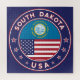 Badge of South Dakota with flag of South Dakota and flag of USA colors, rounded shape.