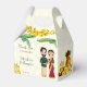 Telugu Tamil South Indian wedding personalized favor gift boxe with banana leaves, kalash and lamps and cute traditional clothes bridal couple.