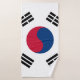 The South Korean flag is a white field with in the center an emblem and four trigrams on each corner of the flag. The used colors in the flag are blue, red, white, black. The proportion of the South Korean flag is 3:2. The Flag of South Korea was adopted in 1883. The first use of the current flag design was in 1882. The last change to the current South Korean flag design was in 1948.